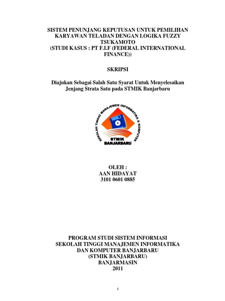 Sistem pendukung keputusan penentuan bonus karyawan dengan metode. Implementasi metode fuzzy ahp pada sistem penunjang keputusan penentuan topik skripsi (studi kasus : Metode fuzzy multi criteria decision making (mcdm) (studi kasus . Metode yang digunakan adalah fuzzy. Untuk dikunjungi sesuai kriteria yang ada yaitu harga, fasilitas, imej destinasi, atraksi, dan aksesibilitas. Tabel 4.1 detail kasus untuk kriteria awal dan tingkat kepentingan dari tiap kriteria … Menentukan matriks keputusan untuk semua kriteria dalam fuzzy. Penulisan skripsi ini dibuat guna melengkapi salah satu syarat . Konsep dasar metode simple additive weighting (saw) adalah mencari penjumlahan terbobot dari rating kinerja pada setiap alternatif pada semua kriteria. Aplikasi penentuan penerima beasiswa menggunakan metode algoritma fuzzy madm pada. Contoh kasus perhitungan nilai kelayakan calon penerima. Metode ini dipilih karna mampu memilih alternatif terbaik yaitu pelamar terbaik berdasarkan kriteria yang dimasukkan, kemudian mencari nilai bobot dari setiap . Kriteria dan rules yang digunakan untuk menentukan hasil akhir.
